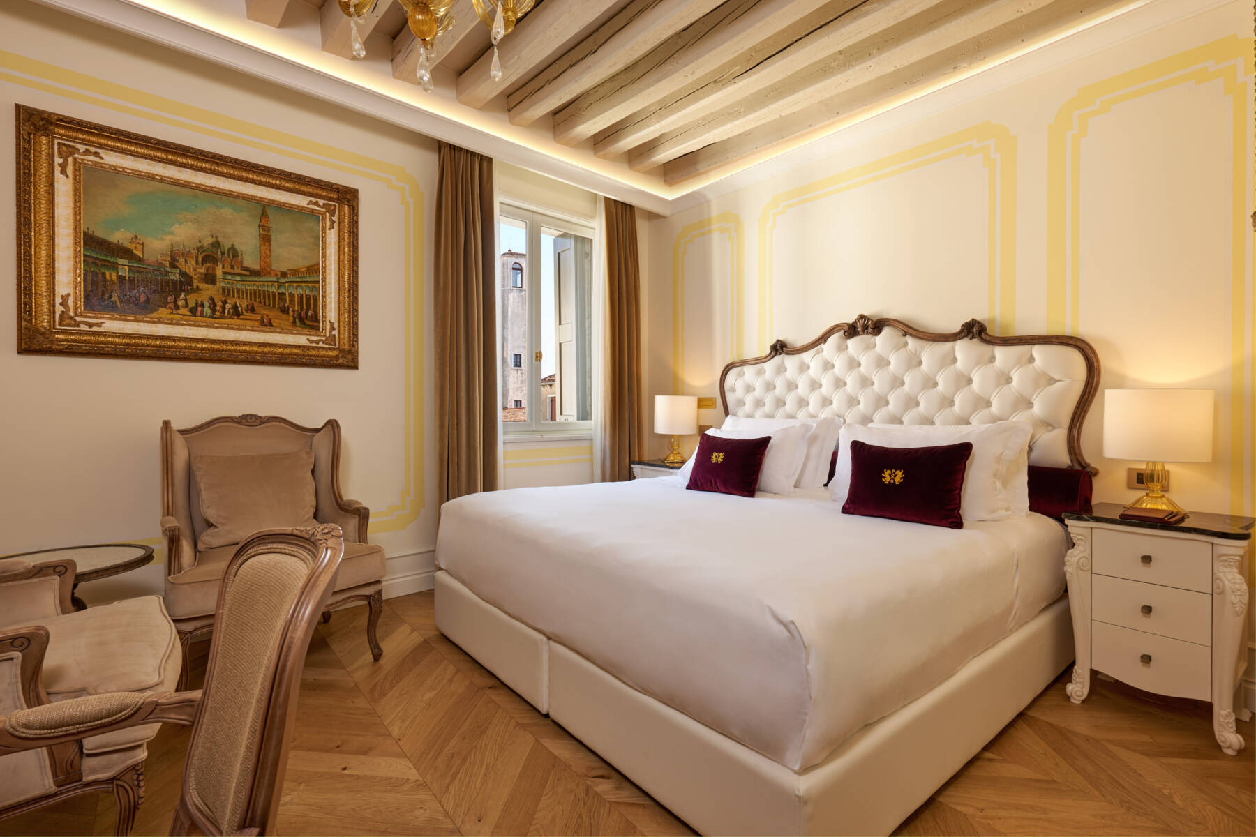 The Mozart Suite, with direct views of the Grand Canal, offers royal and luxurious comfort in an exclusive 120 square meters.